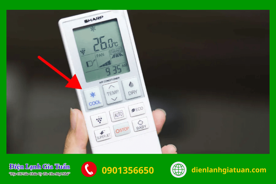 Bước 1: Bật máy lạnh và chỉnh chế độ COOL