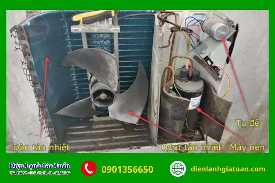 Đầu tiên, anh/chị cần kiểm tra cục nóng nếu không thấy máy rung hay kêu nhẹ, có thể block không chạy do tụ điện yếu hoặc hỏng.
